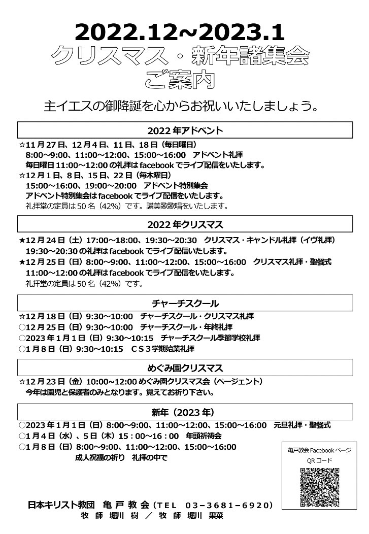 クリスマス・新年諸集会案内