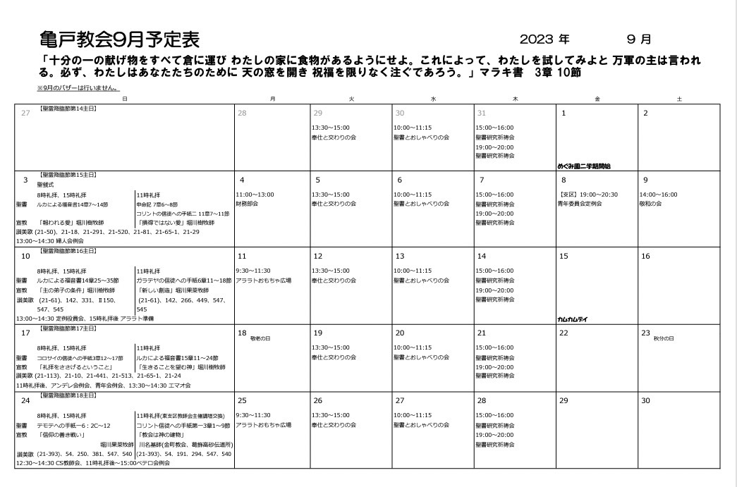 2023.9月集会カレンダー